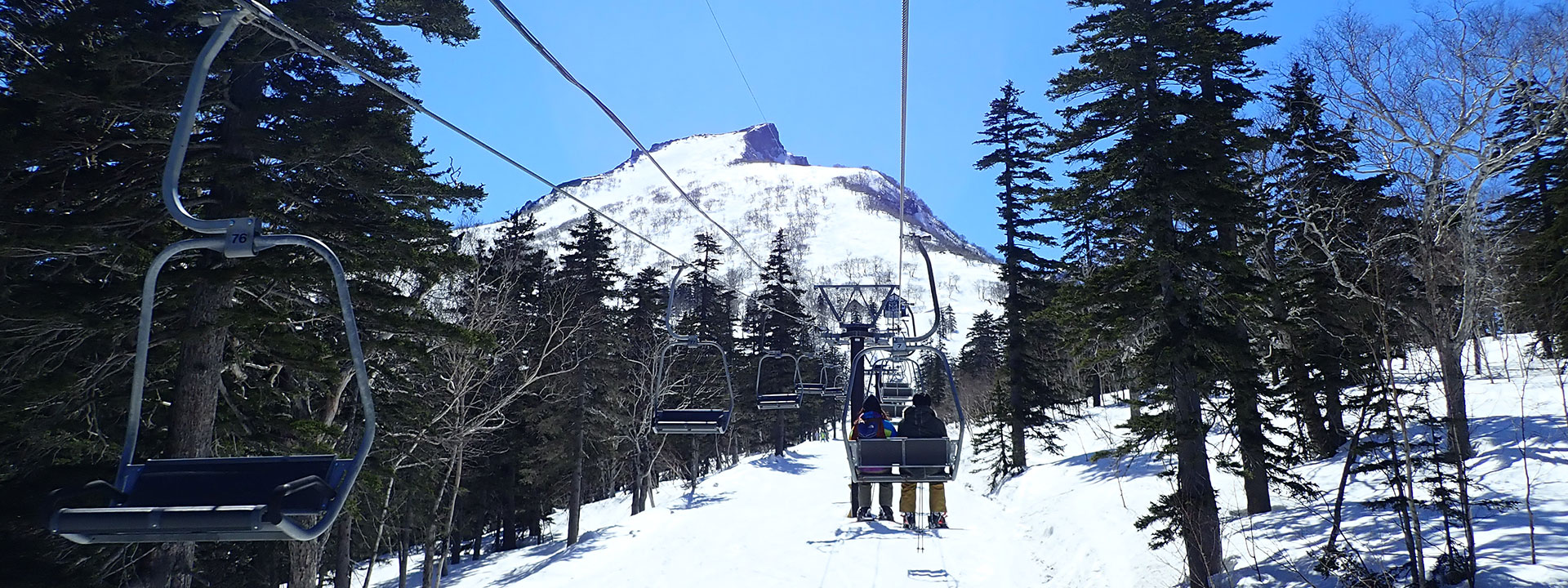 大雪山の北東側にそびえる黒岳(標高1984m)の五合目まで、山麓からロープウェイがかかり、ロープウェイ終着点からさらに、七合目にかけてスキーリフトが運行しています。